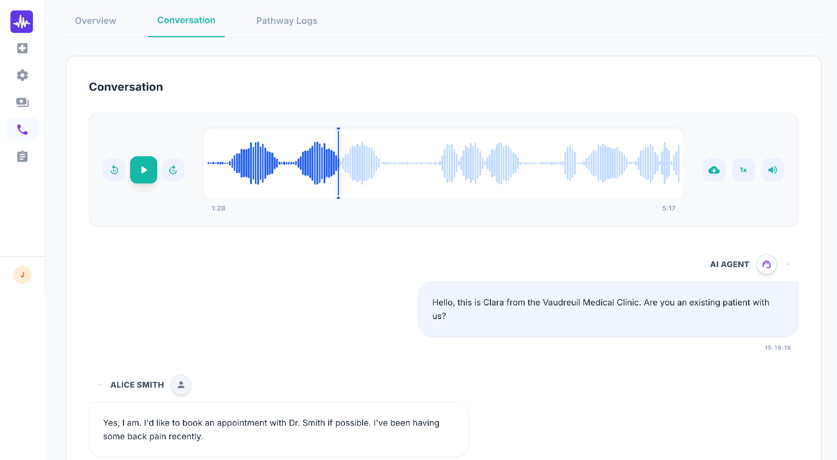 Access the information, tools, and controls that support each patient exchange, from conversation history and outcomes to workflow configuration and performance insights, all within a single, secure portal.
